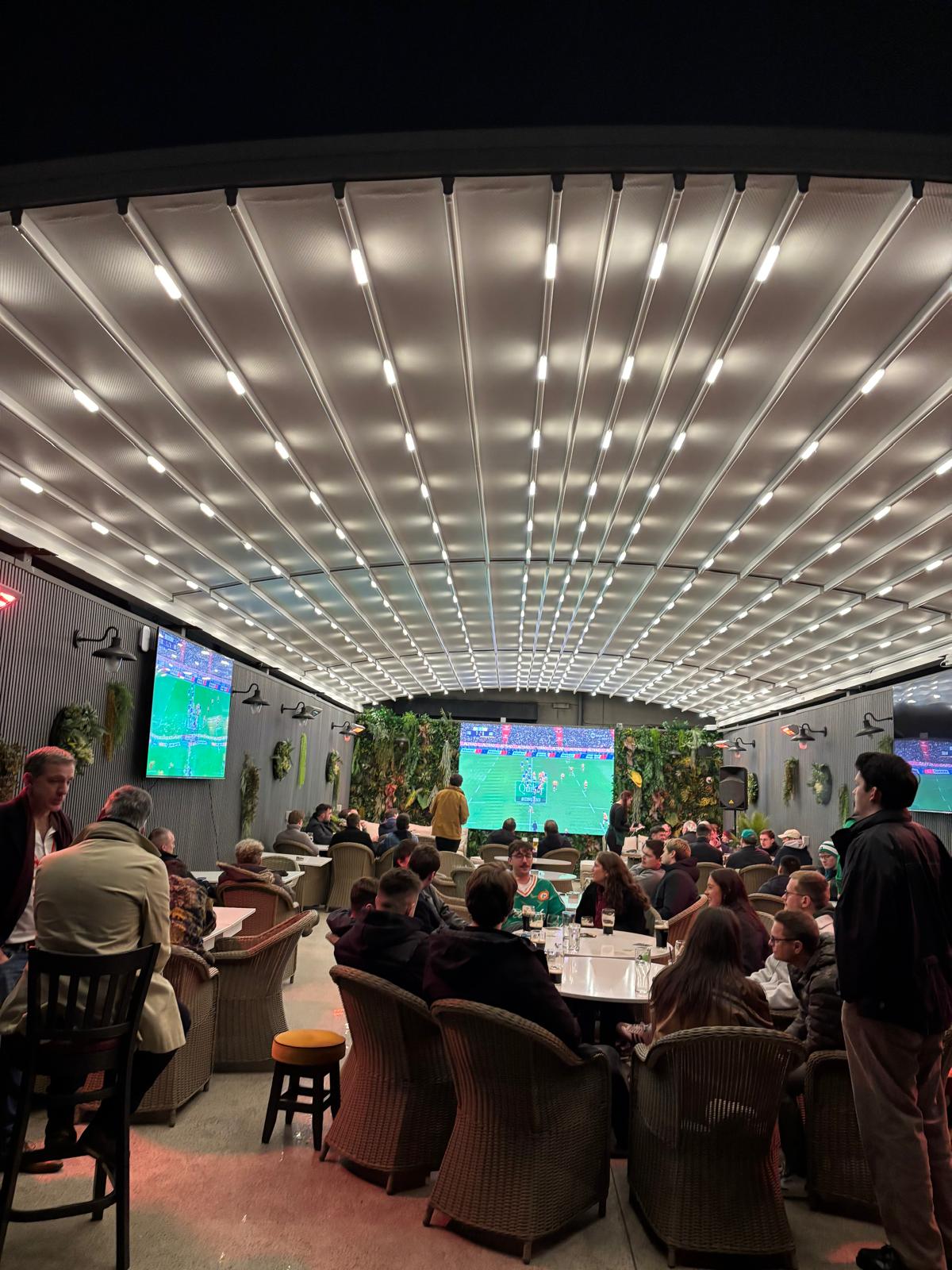 At over 20 metres in length, this curved retractable pergola we installed at McCloskey's is a true showpiece.